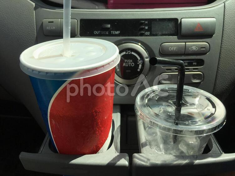 makanan-minuman / In a car in summer, hot summer, empty juice, melting ice, heat stroke, heat stroke, heat stroke warning, dehydration warning