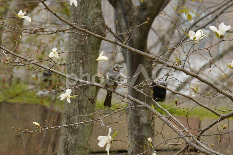 hewan / Photograph of Kobushi flower tree and thrush flower bird-spring